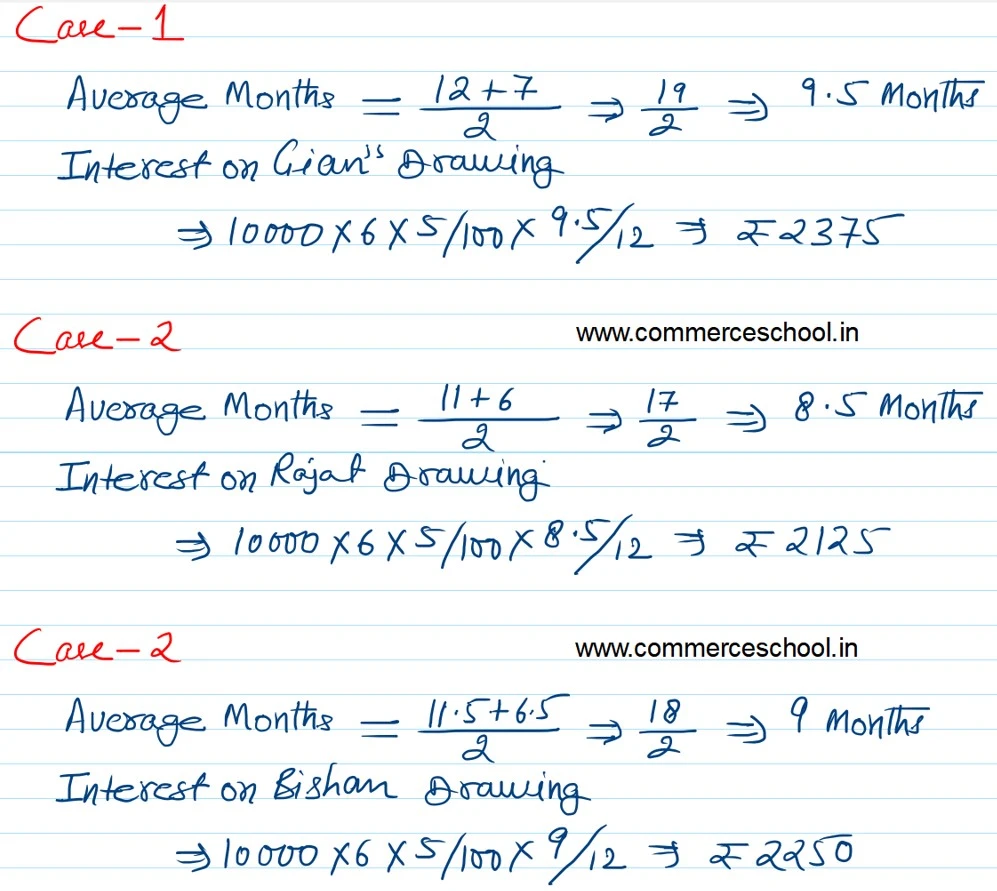 Gian, Rajat, and Bishan are partners sharing profits equally. Gian drew regularly ₹ 10,000 in the beginning of every month for six months 30th September 2022. Rajat drew regularly ₹ 10,000 at the end of every month for six months ending 30th September 2022. Bishan drew regularly ₹ 10,000 in the middle of every month for six months ended 30th September 2022. Calculate interest on drawings @ 5% p.a. for the year ended 31st March 2023.