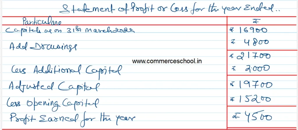 | Capital on 31st March, 2022 | ₹16,900 | Drawings made during the year | ₹48,00 |