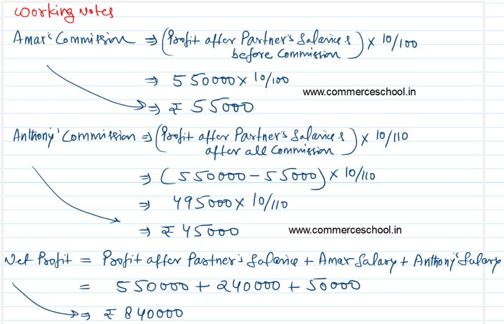 Anthony is entitled to a salary of ₹ 50,000 p.a. and a commission of 10% of the net profit after charging salary and all commissions.