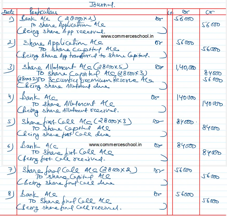 Applications were received for 28,000 shares. All money were duely received. Pass the necessary Journal entries.