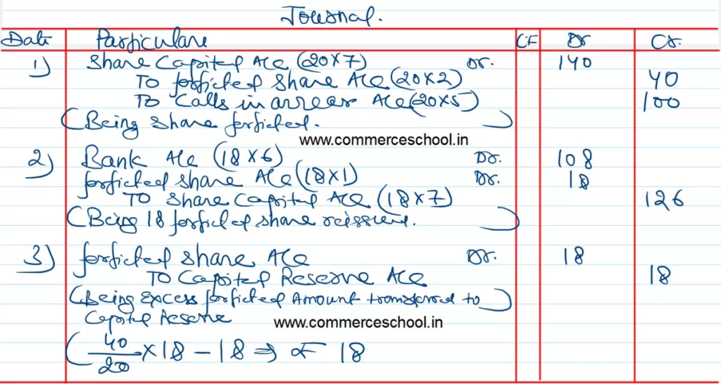 (a) C4T Ltd. forfeited 200 Equity Shares of ₹ 10 each issued at a premium of ₹ 5 per share, held by Shyam for non-payment of allotment money of ₹ 8 per share (including share premium ₹ 5 per share), first call of ₹ 2 per share and final call of ₹ 3 per share. Out of these, 125 Equity Shares were reissued to Bhajanlal @ ₹ 9 per share as fully paid-up.
