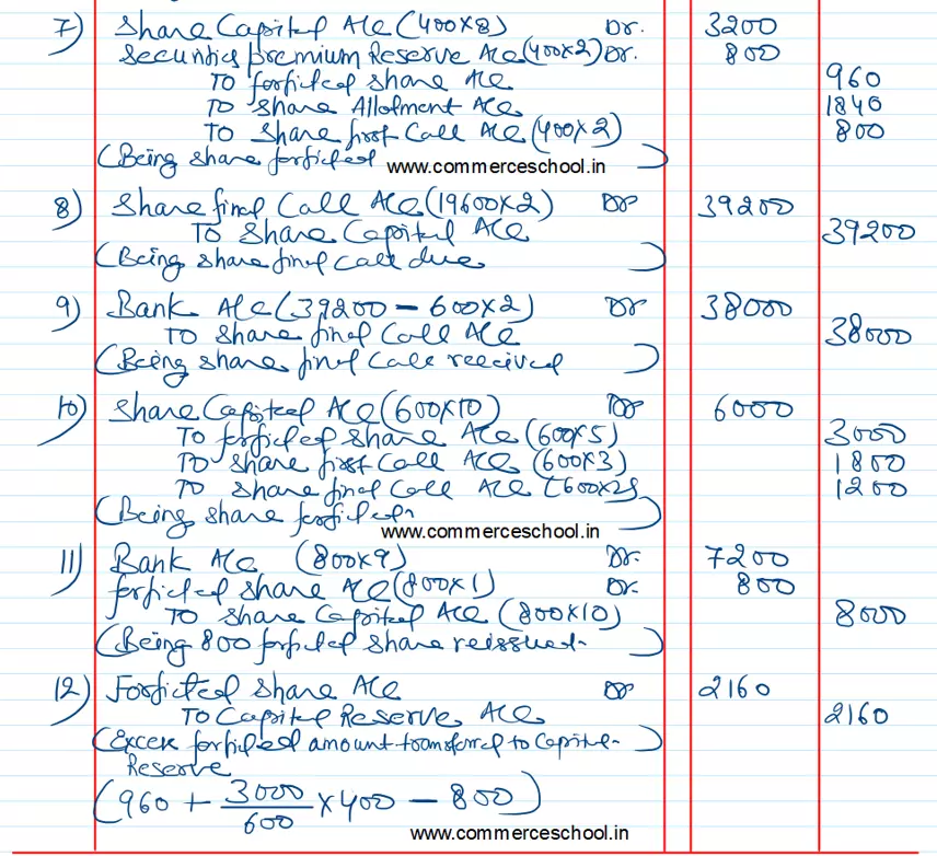 Ramesh, to whom 400 shares were allotted, failed to pay the allotment money and on his subsequent failure ot pay the first call his shares were forfeited. Mohan, the holder of 600 shares, failed to pay the two calls and his shares were forfeited after the second call.