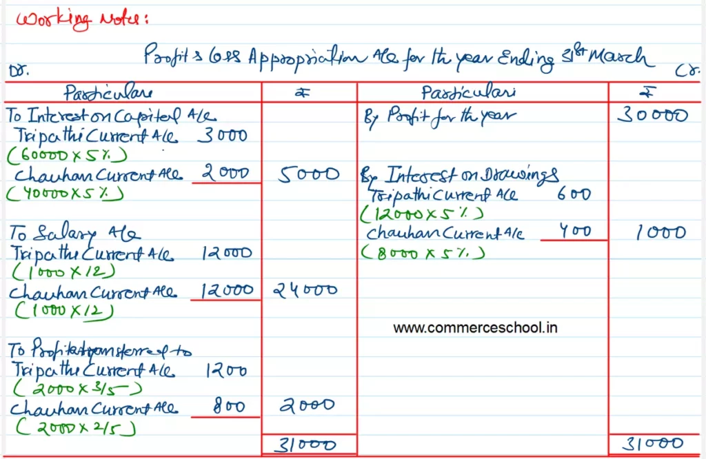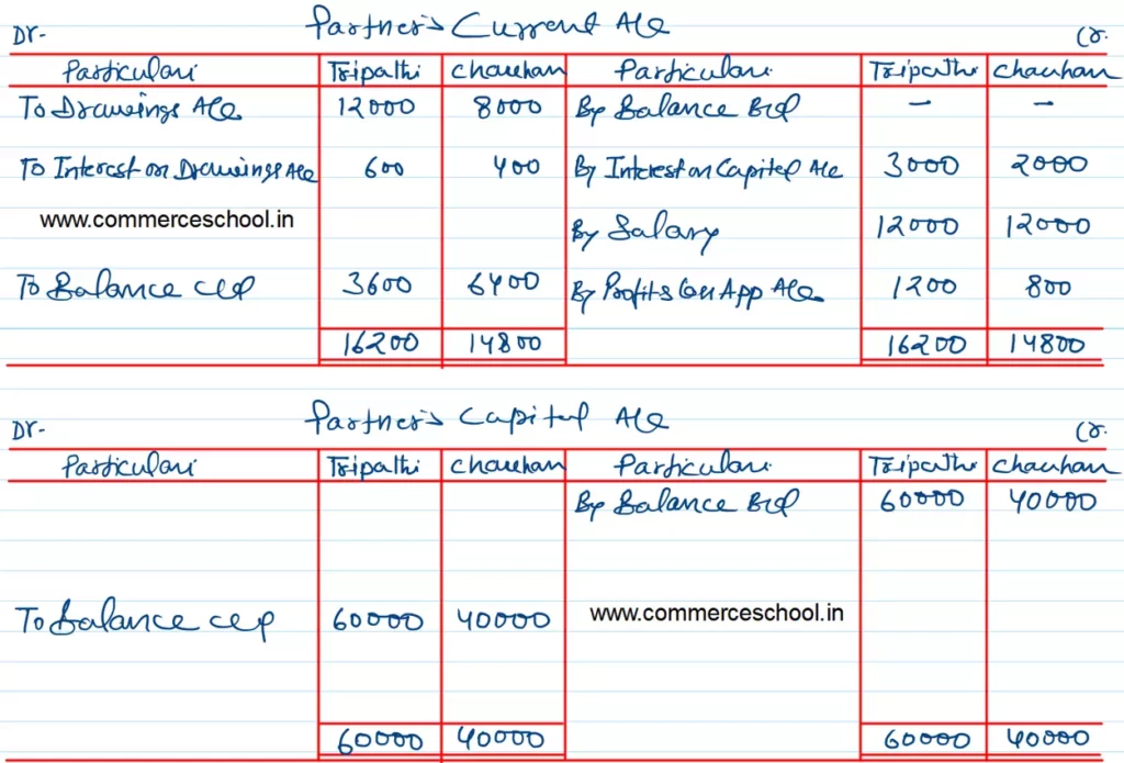 (Ans : Tripathi’s Current account Balance ₹ 3,600, Chauhan’s Current account Balance ₹ 6,400). Tripahti’s capital ₹ 60,000. Chauhan capital ₹ 40,000).
