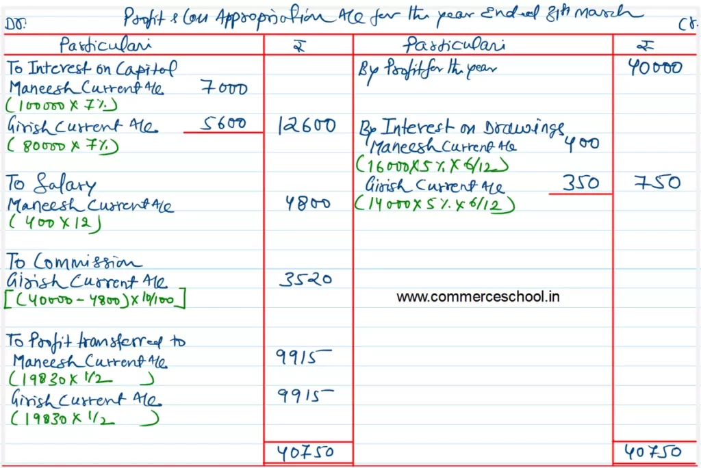 [Ans: Profit transferred to the Capital Accounts of Maneesh and Girish each, ₹ 10,290.]