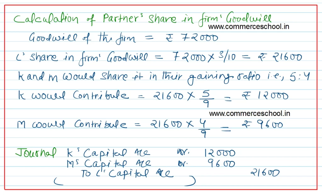 (ii) Goodwill of the firm is valued at ₹ 72,000.
