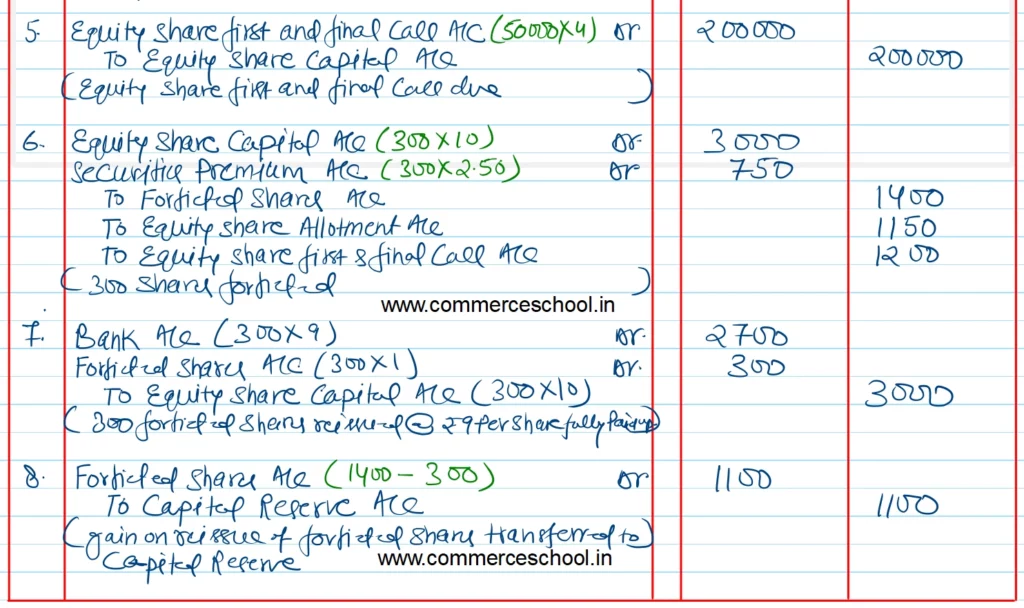 [Ans. Cash received on Allotment ₹ 2,13,850; Balance of Share forfeiture A/c transferred to Capital Reserve ₹ 1,400 – ₹ 300 = ₹ 1,100.]