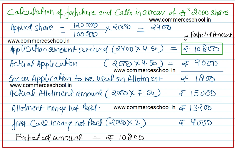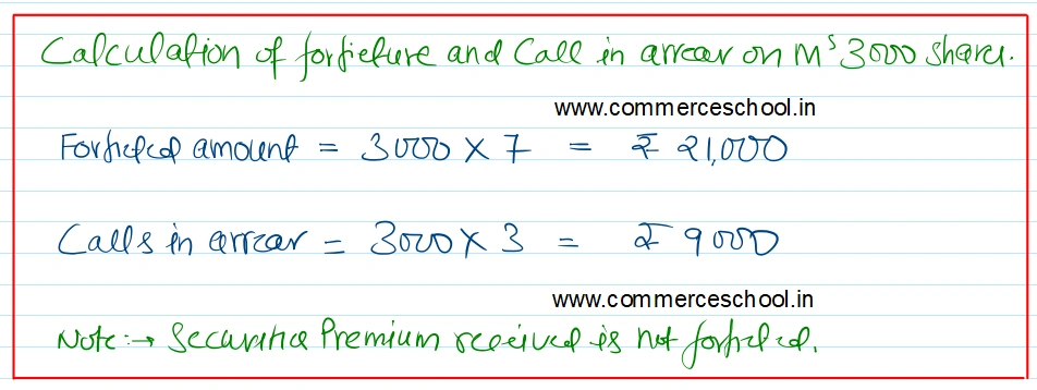 D, to whom 2,000 shares were allotted, failed to pay allotment money and on his failure to pay the first call, his shares were forfeited. M, the holder of 3,000 shares failed to pay the two calls, and so his shares were also forfeited. All these shares were sold to R, credited as fully paid for ₹ 8 per share.