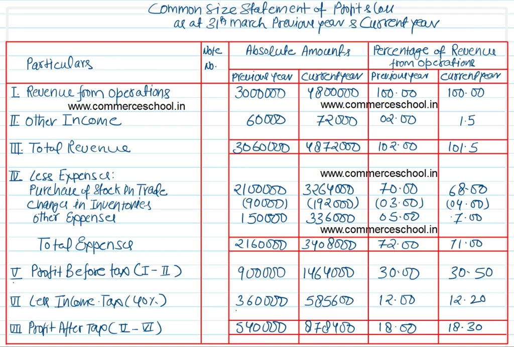 Prepare a Common Size Statement of Profit & Loss from the following: