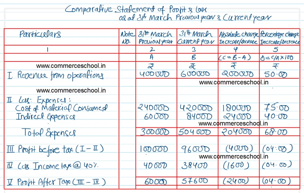 Prepare a Comparative Statement of Profit & Loss from the following information: