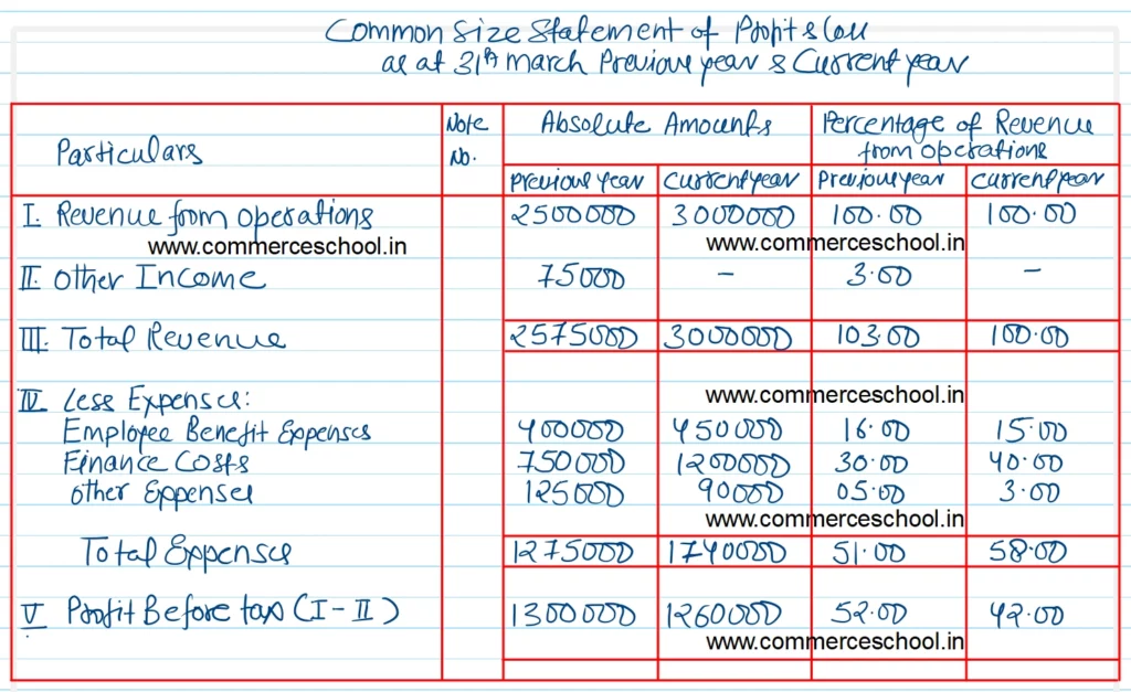 Prepare a Common Size Statement of Profit & Loss of Vinod Paper Mills Ltd. from the following information: