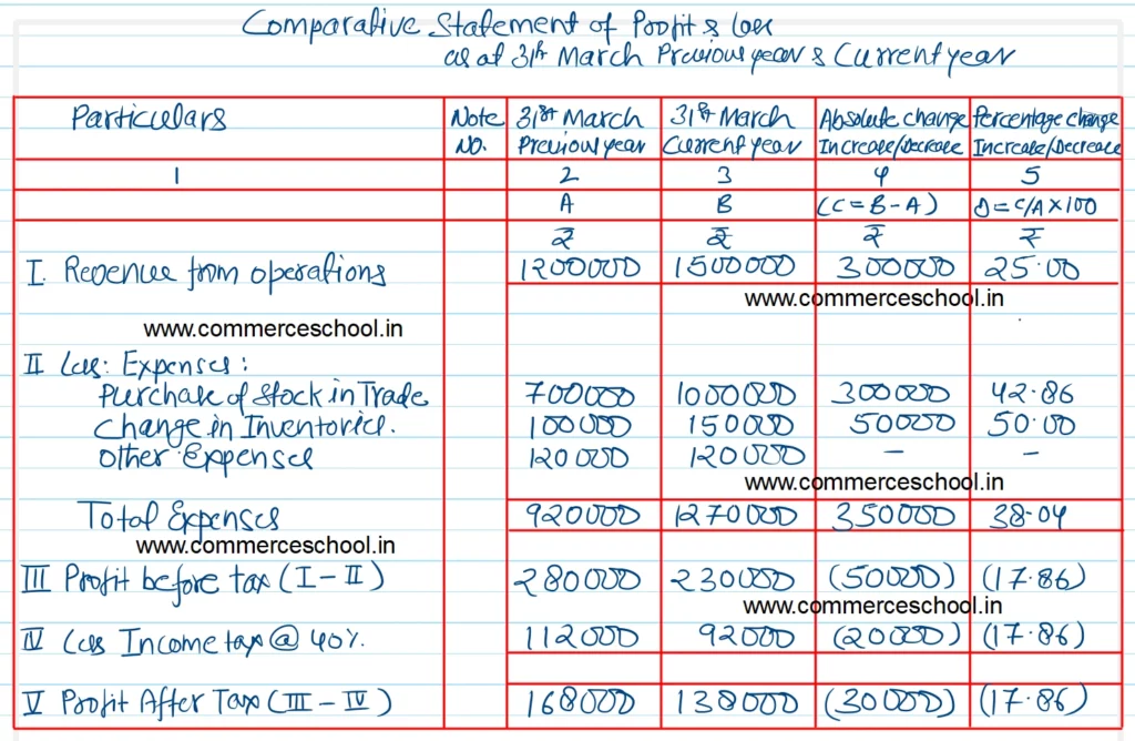 Prepare a Comparative Statement of Profit from the following information: