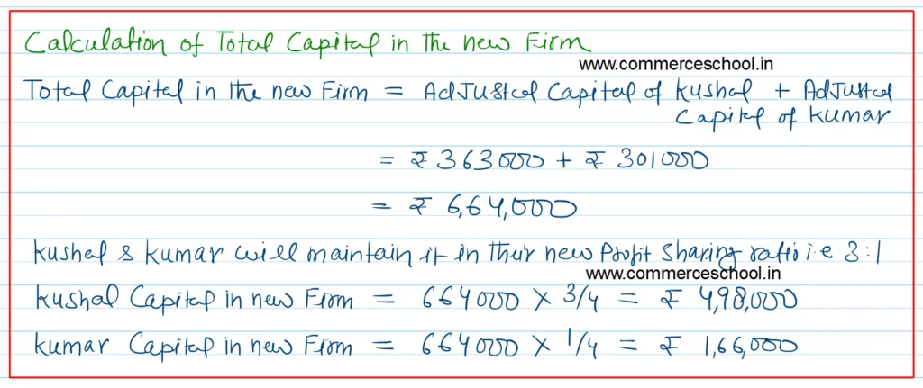 (vi) Capitals of Kushal and Kumar will be in proportion to their new profit sharing ratio. The surplus/deficit, if any in their Capital Accounts will be adjusted through Current Accounts.