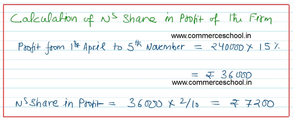 (c) His share of profits for the intervening period will be based on the sales during that period, which were calculated as ₹ 2,40,000. The rate of profit during past 4 years had been 15% on sales.