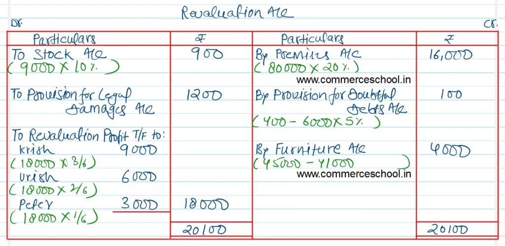 (i) Premises to be appreciated by 20%, Stock to be depreciated by 10% and Provision for doubtful debts was to be maintained @ 5% on Debtors. Further, provision for legal damages is to be increased by 1,200 and furniture to be brought up to ₹ 45,000.