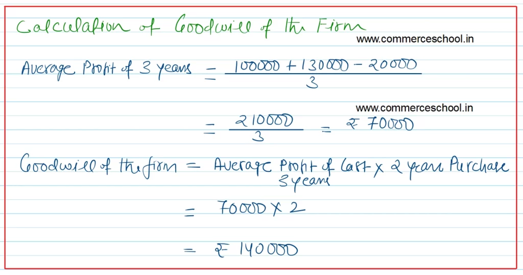 (a) Goodwill of the firm was valued at 2 year’s purchase of average profits of three completed years preceding the date of retirement. The profits for the year: